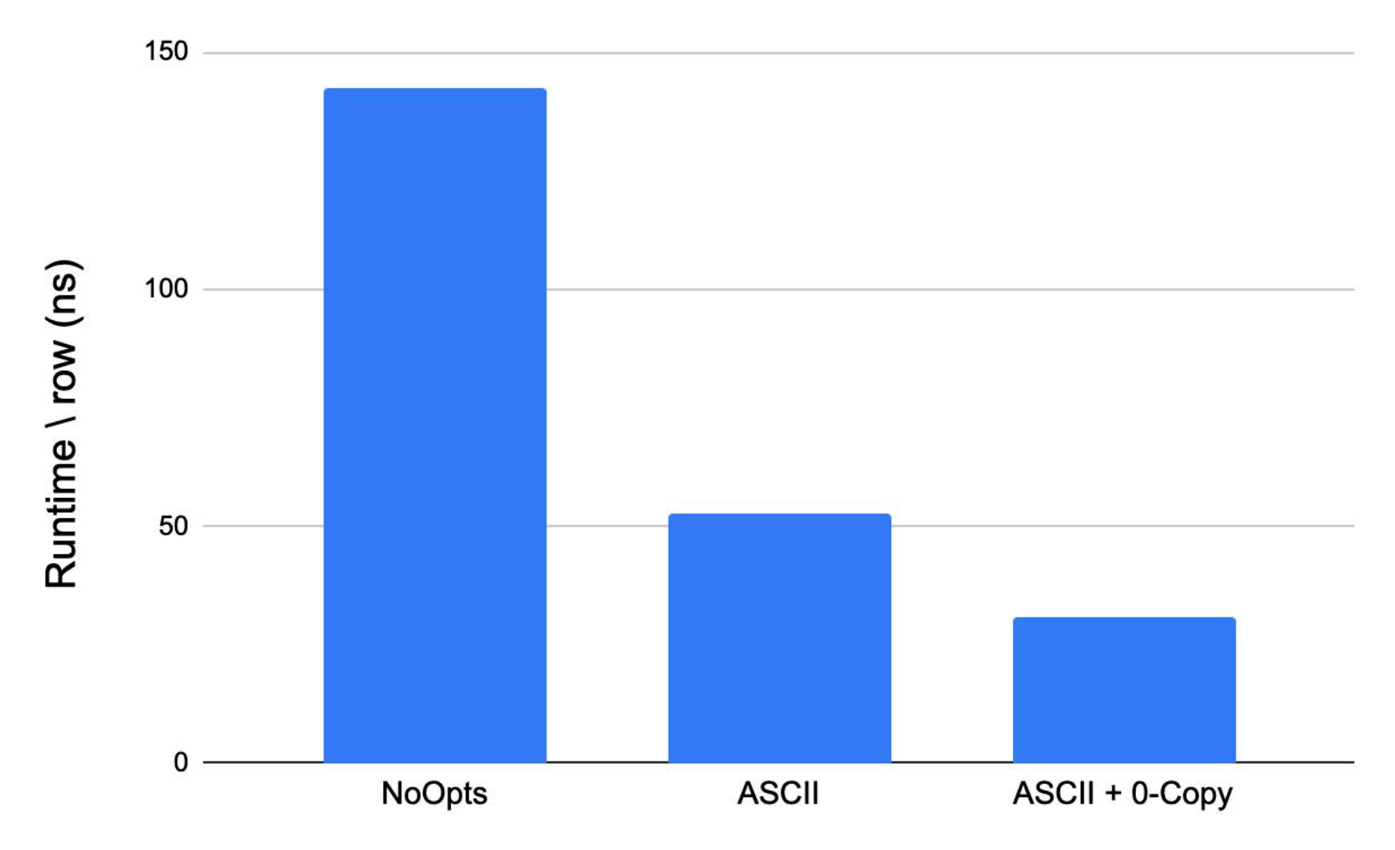 To avoid code size blowing, we only apply this optimization when all input arguments are primitives and the number of input arguments is <=3. The figure below shows the effect of this optimization on the processing time of a query of primitive operations (the expression is a common pattern in ML use cases).
